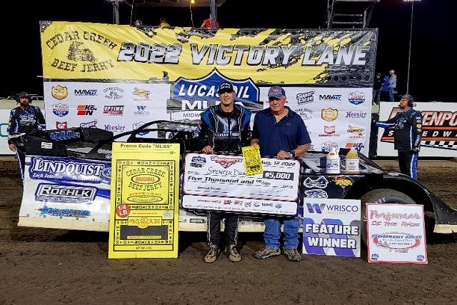 For the second round of the tripleheader weekend, Diercks made the short trip to Davenport Speedway (Davenport, Iowa) on Friday evening. With 19 cars entered, Spencer laid down the fastest time overall before placing first in his heat. Holding off Chris and Chad Simpson in the 30-lap feature, Diercks charged to his first career Lucas Oil MLRA triumph ahead of the Simpson brothers, Justin Kay, and Frank Heckenast Jr. He earned $5,000 for his first win of the 2022 campaign.